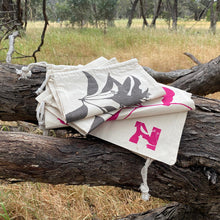 Medium size is 25 x 35cm, one-sided print in a beautiful grey gum leaves design.