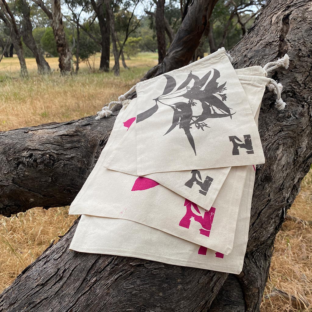Give the ultimate gift of sustainable storage with a four-pack of our printed cotton produce bags, two medium and two large.